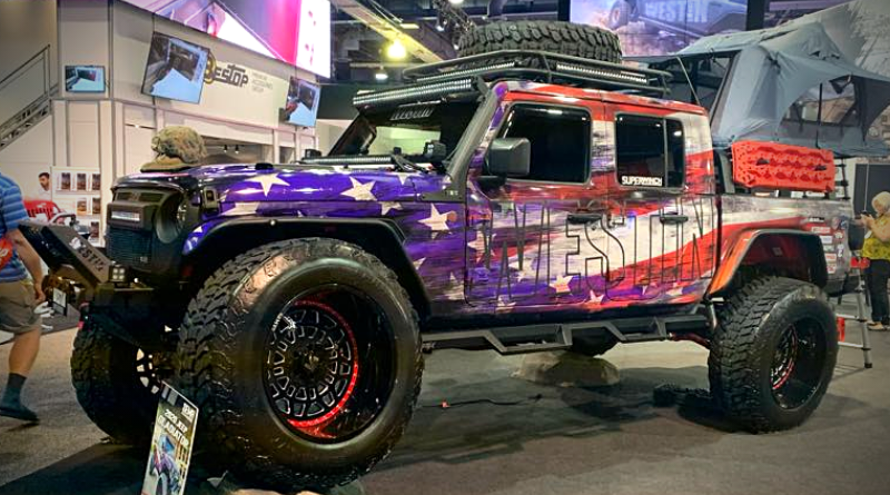 But this was no ho-hum, run-of-the-mill Gladiator. Oh, no. Built by the talented guys at Auto Definitions, this beast was dressed toe-to-tip in a fiercely patriotic American flag wrap. And, even better, it showed off some of the finest new advancements that Westin has spent the last 12 months perfecting for the aftermarket.